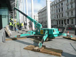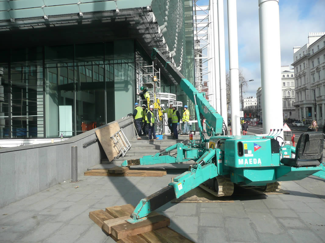 Glass replacement lift by a 305 Maeda Mini Crane
